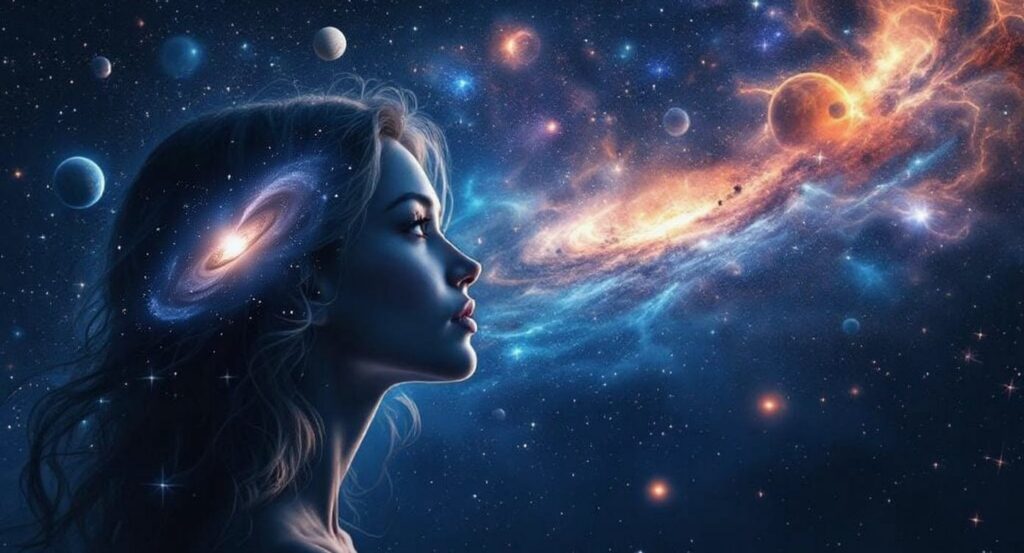 Unser Gehirn ist der Ort im Universum, in dem unsere Gedanken Dinge wahrnehmen und erschaffen können. Wir können Gedanken in unserem Kopf entstehen lassen – wie Sterne die neu geboren werden, eine Zeit lang existieren und am Ende wieder erlöschen. Und manche Gedanken können wir sogar zu Visionen reifen lassen die wir am Ende realisieren, indem wir sie materialisieren und damit Teil unserer Welt auf der Erde werden lassen.